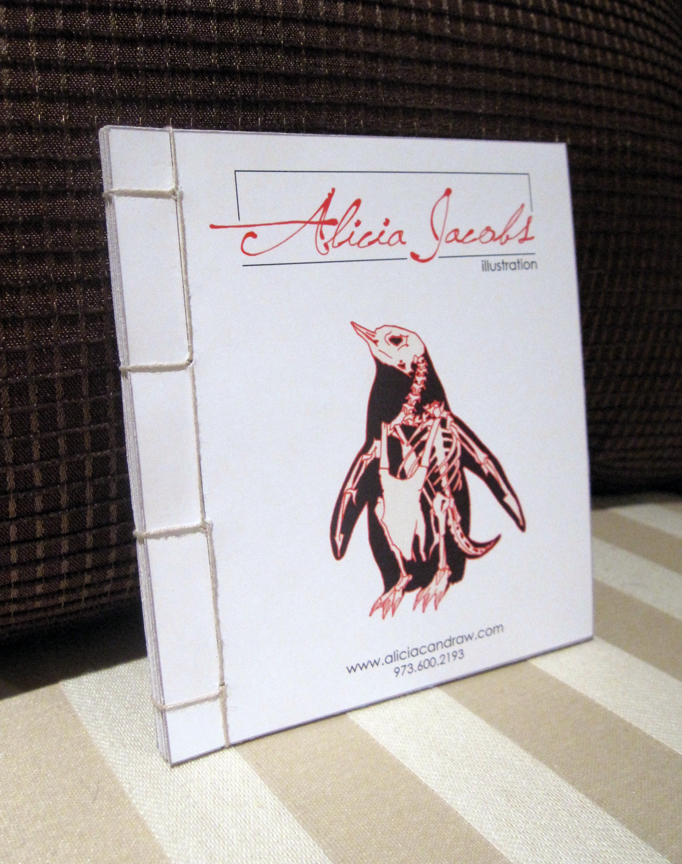 This coming Thursday my whole MFAI class is taking a trip to Penguin Books to meet with Paul Buckley. Instead of having portfolio reviews we were told to bring an extra special leave-behind. On Sunday I got to work on a one-of-a-kind hand-bound portfolio book to leave with him that features seventeen of my personal favorite (and strongest) illustrations. I haven't posted it until now because I was so frustrated at certain points during the making that I didn't even want to look at it for a couple days. Shrug, it's natural - happens every time I bind a book.
