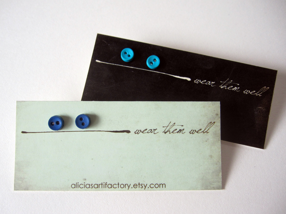 I guess it's sort of obvious at this point that I've become the slightest bit addicted to making earrings. Can you blame me? I wore the same gauges for over five years and now that I've taken them out and have normal earring holes again I am crazy for (and very picky about) the earrings I choose to wear. I've been itching for weeks to make button earrings for myself and also to put on my etsy shop, so here's what I ended up doing...